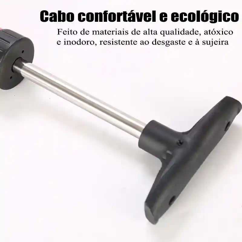 Este desentupidor de vaso tem cabo de plástico ABS resistente, não entorta e não enferruja. O formato é ergonômico, fácil de segurar e confortável. Gera bastante pressão de ar, pode ser usado várias vezes e dura por anos. Possui alças flexíveis e botão de acionamento simples. Assim, você não precisa chamar encanador nem usar produtos químicos fortes.