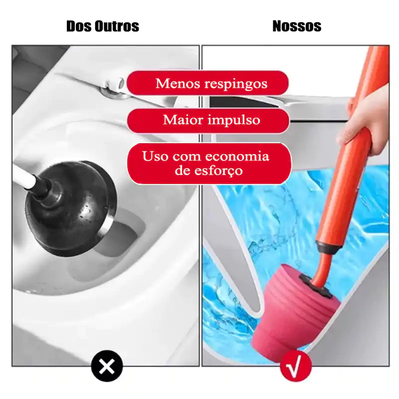 Desentupidor de alta pressão! Ele usa a força do ar comprimido (0-8psi) para tirar o entupimento rapidinho. Em poucos segundos o cano fica livre. Muito mais rápido e eficiente que desentupidores comuns ou cabos de encanador!